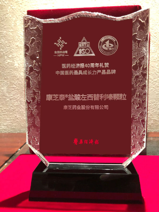 8月25日,2020全國藥店周暨中國醫(yī)藥工業(yè)百強年會、中國醫(yī)藥互聯(lián)網(wǎng)經(jīng)濟年會在云南昆明拉開帷幕。會上,“醫(yī)藥經(jīng)濟報40周年禮贊?中國醫(yī)藥最具成長力產(chǎn)品品牌”活動同步發(fā)布,康芝藥業(yè)的康芝泰?鹽酸左西替利嗪顆粒憑借臨床治療價值、行業(yè)影響力、市場規(guī)模及增長速度等優(yōu)勢榮登榜單。