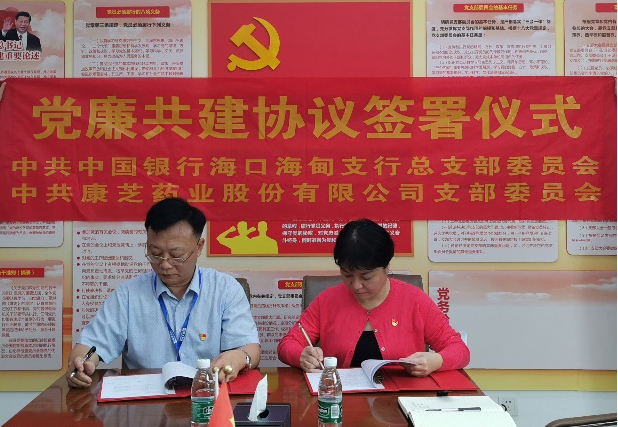 本次簽署儀式在康芝藥業(yè)海南總廠會議室舉行。儀式上,中國銀行海甸支行派駐紀檢組長吳佩珊與康芝藥業(yè)黨總支書記何子群分別致辭,各自介紹了所在單位的業(yè)務(wù)發(fā)展及黨建活動開展的情況,提出了此次黨廉共建的工作目標(biāo)及思路。本著“優(yōu)勢互補,共聯(lián)共建,互利互惠,共謀發(fā)展”的共建原則,中共中國銀行海口海甸支行總支部委員發(fā)出黨廉共建的倡議,在鮮紅的中國共產(chǎn)黨黨旗下,雙方簽訂了《黨建共建協(xié)議書》、《廉潔伙伴協(xié)議書》。