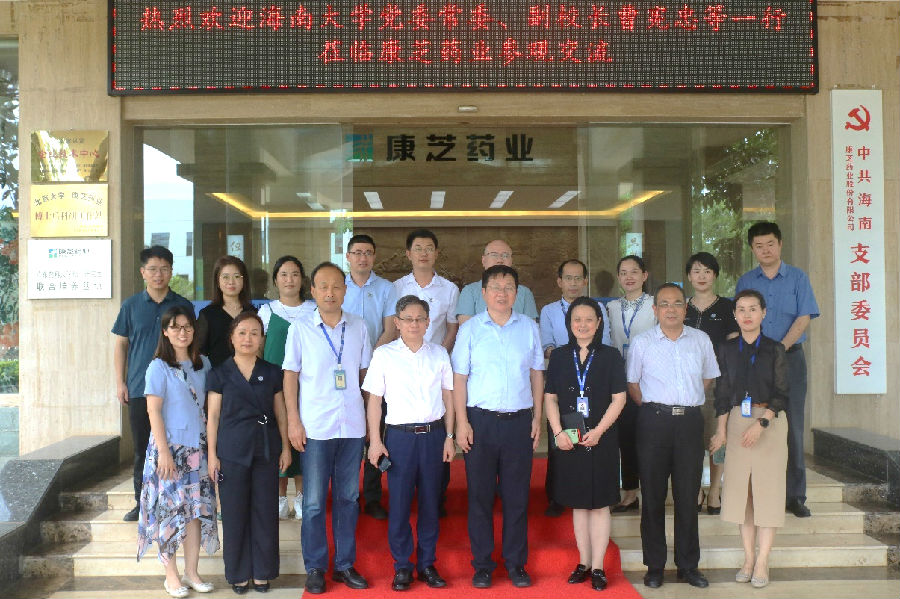 為提高人才培養(yǎng)質(zhì)量和辦學(xué)水平,加強(qiáng)校企協(xié)同育人機(jī)制建設(shè),2022年5月11日上午,海南大學(xué)黨委常委、副校長曹憲忠?guī)ьI(lǐng)藥學(xué)院教師團(tuán)隊前往康芝藥業(yè)股份有限公司走訪調(diào)研,開展“訪企拓崗促就業(yè)”專項活動,并在康芝藥業(yè)海南基地舉行海南大學(xué)藥學(xué)院實踐教學(xué)、實習(xí)就業(yè)基地簽約暨授牌儀式。