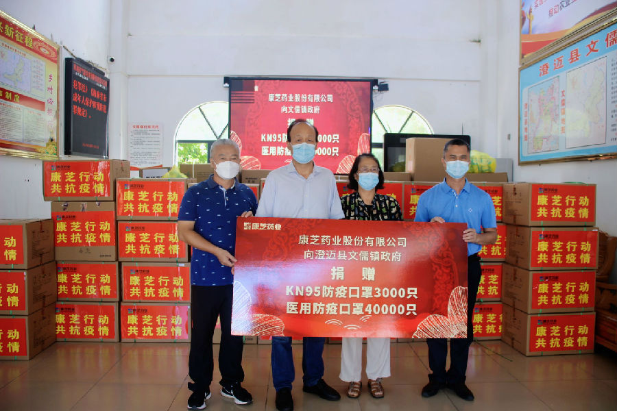 據(jù)了解,文儒鎮(zhèn)位于澄邁、定安、屯昌三縣交界處,交通便捷、人員物資流動頻繁,防疫壓力較大,防疫物資需求迫在眉睫。在海南省政府的支持下,康芝藥業(yè)順利辦理了《海南省重點(diǎn)物資運(yùn)輸車輛通行證》,確保了愛心防疫物資可以及時運(yùn)輸。8月13日,康芝藥業(yè)海南基地總經(jīng)理高洪常帶隊,將40000只醫(yī)用防疫口罩、3000只KN95防疫口罩等康芝抗疫愛心捐贈物資順利送抵澄邁縣文儒鎮(zhèn),由文儒鎮(zhèn)政府統(tǒng)一調(diào)配使用。
