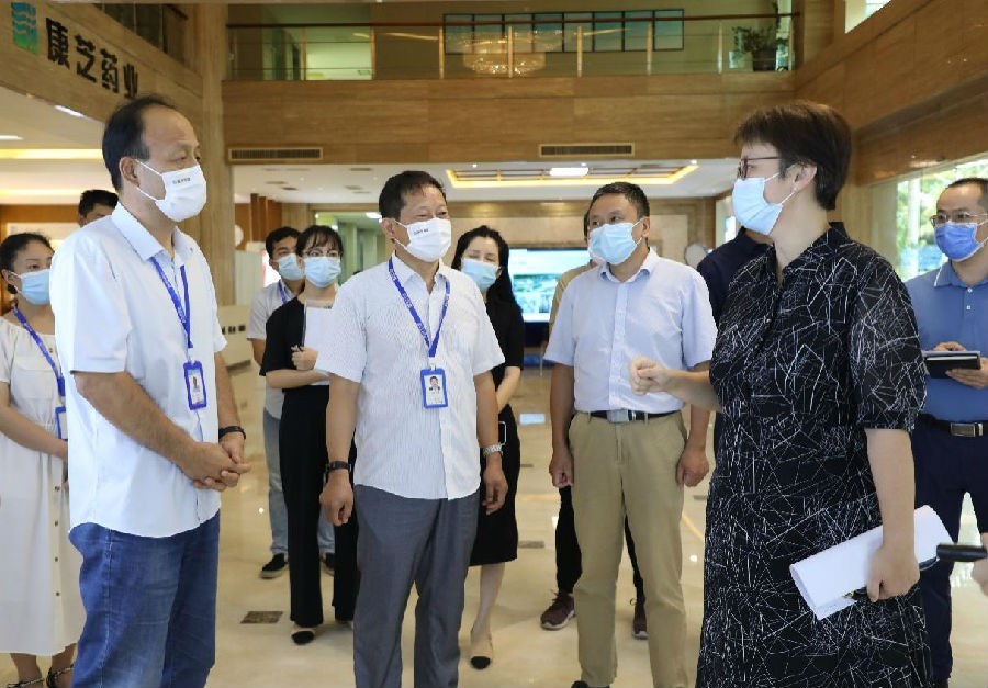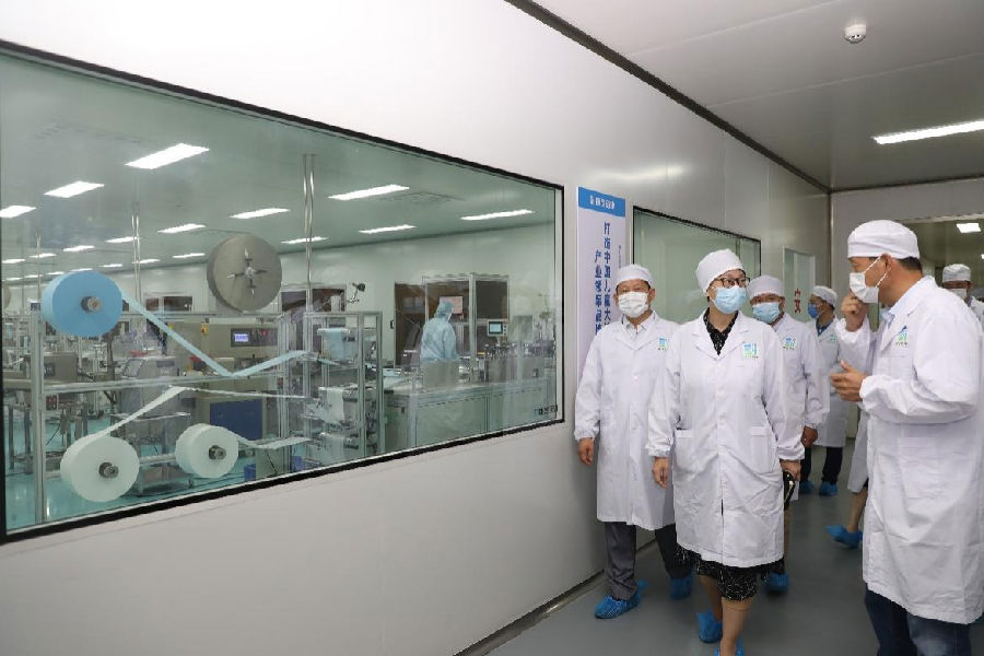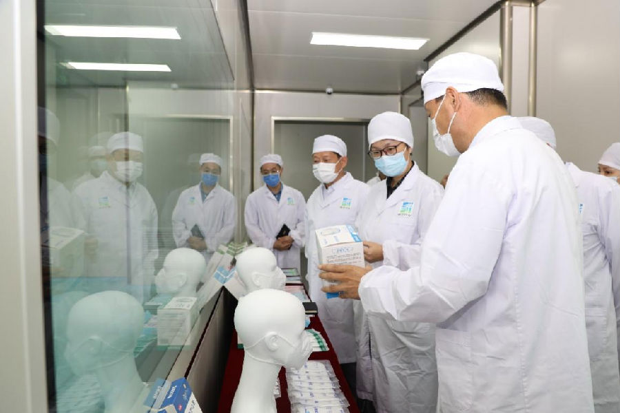 隨后,海南省藥監(jiān)局朱寧局長一行在我司領導的陪同下,參觀了康芝藥業(yè)的醫(yī)用防護口罩生產(chǎn)車間,康芝藥業(yè)海南基地總經(jīng)理高洪?,F(xiàn)場匯報了康芝藥業(yè)的口罩產(chǎn)品情況、海南(國際)醫(yī)療防護用品生產(chǎn)基地項目情況以及本次疫情期間康芝藥業(yè)踐行的“疫情防控與安全生產(chǎn)兩頭抓”的閉環(huán)生產(chǎn)管理辦法。朱寧局長對康芝藥業(yè)在疫情期間積極履行社會責任、擴充產(chǎn)能、申報創(chuàng)新產(chǎn)品與服務、服務疫情防控大局等方面給予了充分肯定。