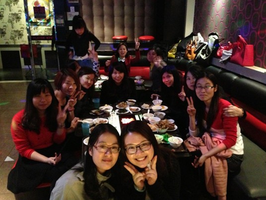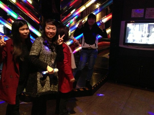 3月7日晚,女職工們提前一小時下班,一同前往玩家KTV參加活動?;顒又校蠹覡幭喃I歌,氣氛熱烈。