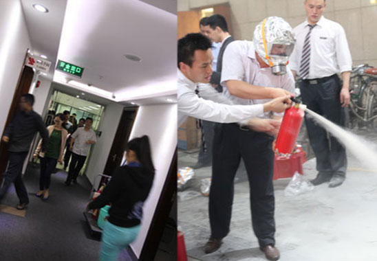 培訓(xùn)內(nèi)容主要有如何排查容易引發(fā)火災(zāi)的消防安全隱患、高樓發(fā)生火災(zāi)自救、辦公電器設(shè)施設(shè)備正確使用、火情緊急情況處置、鑒別滅火器是否有效和正確使用方法、防煙面具的使用方法、火災(zāi)應(yīng)急疏散常識(shí)等,并組織了疏散演練。
