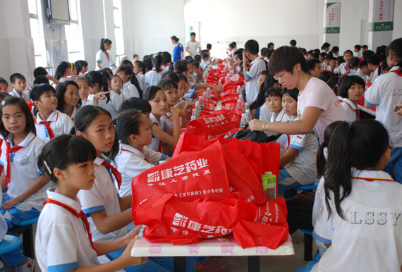 此次活動為思源實驗學校的學生們送去了兒童健康安全手冊、文具和糖果,并為陵水縣醫(yī)療設施匱乏的12所學校送去了“愛心藥箱”,“愛心藥箱”可以提供每所學校一年的OTC常用藥品,為了充分發(fā)揮藥箱的作用,來自省里的兒科專家還為學校老師和同學們介紹了各類藥品的使用和常識,普及急救安全常識和安全防范的技能。