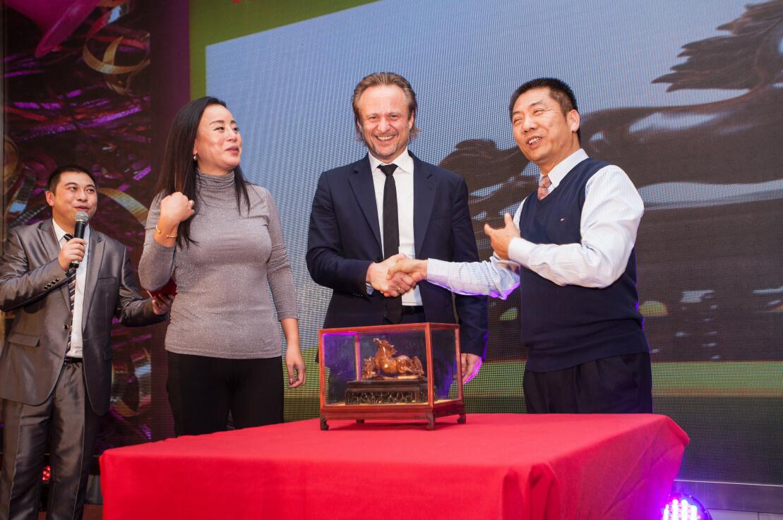 關(guān)愛,是康芝一直倡導(dǎo)的企業(yè)文化,關(guān)愛員工,關(guān)愛家人,關(guān)愛社會,關(guān)愛所有的孩子。慈善拍賣是歷年來康芝年會舞臺上獨有的一道風(fēng)景,也是所有員工和合作伙伴期待的特殊節(jié)目。本屆年會上,作為紅臉蛋基金會創(chuàng)始人,洪江游先生再次捐出個人珍藏多年的的兩件文化收藏品,分別是由中國著名象牙雕刻大師慕秋梅大師匠心打造的硨磲吉祥大擺件,以及寓意萬馬奔騰奮勇向前的海南黃花梨駿馬擺件。兩件藏品分別被公司合作伙伴與外國技術(shù)顧問現(xiàn)場競投成功,共籌集款項人民幣6萬元。該善款的30%將捐贈給專注于幫助貧困兒童身心健康成長的康芝紅臉蛋基金,其余則用于現(xiàn)場抽獎。當紅臉蛋基金宣傳片感人的音樂響起,在洪江游董事長帶頭下,康芝高管們競相為紅臉蛋基金現(xiàn)場捐款,員工與嘉賓們亦紛紛慷慨解囊。