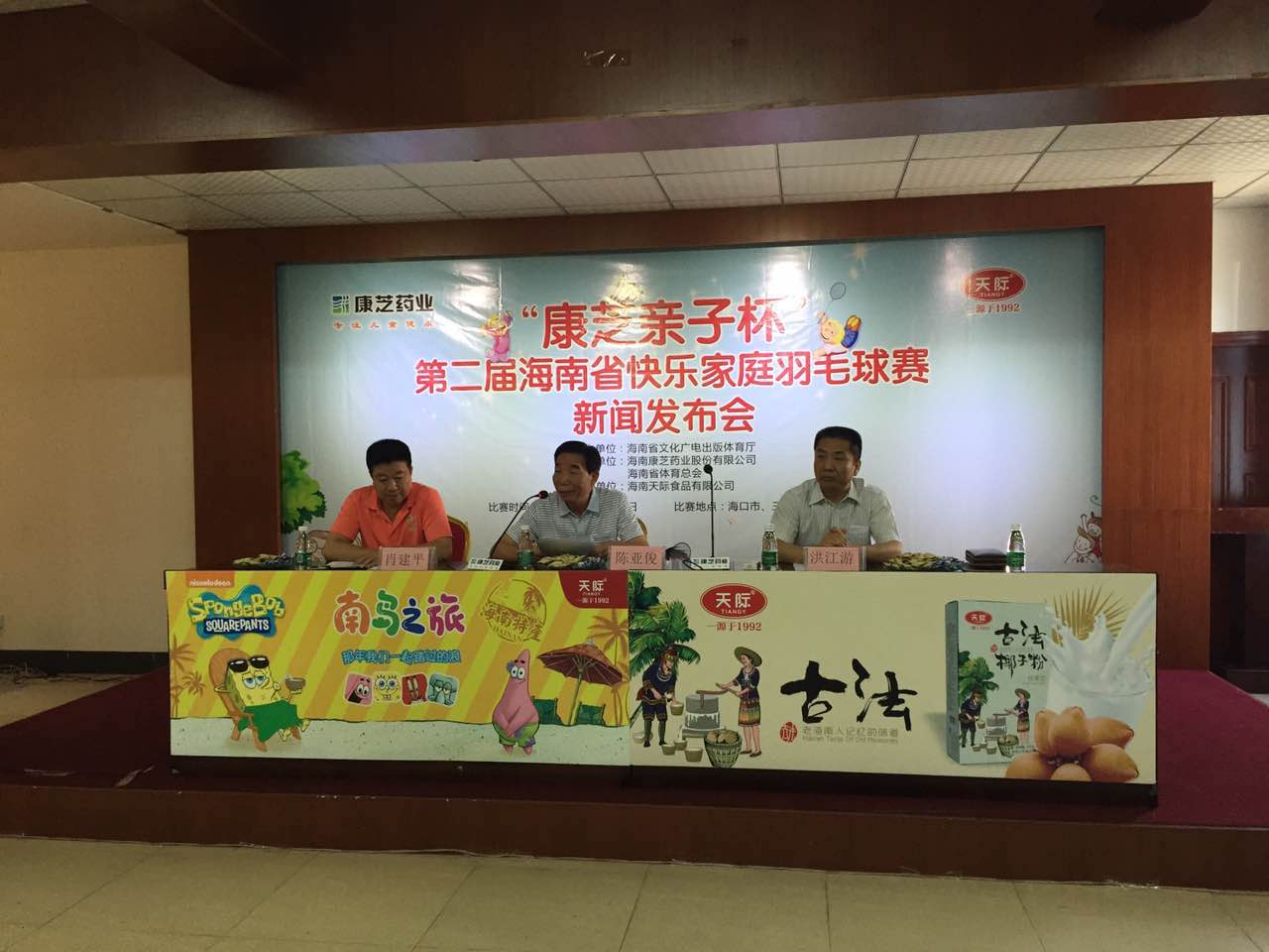 5月29日,由海南省文化廣電出版體育廳主辦,海南省體育總會(huì)和海南康芝藥業(yè)股份有限公司共同承辦,海南天際食品有限公司協(xié)辦的“康芝親子杯”第二屆海南省快樂(lè)家庭羽毛球賽新聞發(fā)布會(huì)在海南省??谑姓匍_(kāi)。省體育總會(huì)主席陳亞俊、省文體廳群體處副處長(zhǎng)肖建平等領(lǐng)導(dǎo),及海南康芝藥業(yè)股份有限公司董事長(zhǎng)洪江游先生、海南康芝藥業(yè)股份有限公司海南總廠總經(jīng)理王培先生等嘉賓出席了發(fā)布會(huì)。來(lái)自海南全省的多家主流權(quán)威媒體也來(lái)到現(xiàn)場(chǎng)進(jìn)行采訪報(bào)道。
