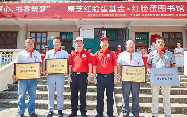連南縣是廣州市越秀區(qū)對口支援辦的對口扶貧單位,此次捐建活動得到了廣州市越秀區(qū)對口支援辦、廣州幫扶清遠指揮部、連南縣委、連南縣教育局等單位的支持?,F場,越秀區(qū)政協副主席胡仲華分別向廣東省潮聯會副會長兼執(zhí)行秘書長范思斌及康芝藥業(yè)董事長洪江游頒發(fā)了“愛心單位”錦旗。隨后,領導嘉賓、志愿者及學校師生共同見證社墩小學“康芝紅臉蛋圖書館”揭幕。