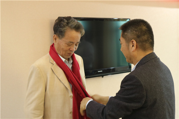 洪江游董事長(zhǎng)在百忙之中參加了退休儀式。在致辭中,洪董充分肯定了老洪叔25年來對(duì)康芝所做的貢獻(xiàn),并回憶起當(dāng)年公司最困難、最艱苦時(shí),老洪叔不離不棄、主動(dòng)提出不要工資、自己養(yǎng)活自己的感人事跡。接著,洪董代表康芝藥業(yè)為老洪叔頒發(fā)了光榮退休證書,并親自為老洪叔圍上紅圍巾,借此向老洪叔多年來對(duì)公司的辛勤付出表示衷心的感謝,他還祝愿老人家身體健康、闔家歡樂、晚年幸福。