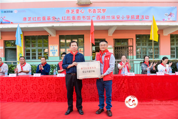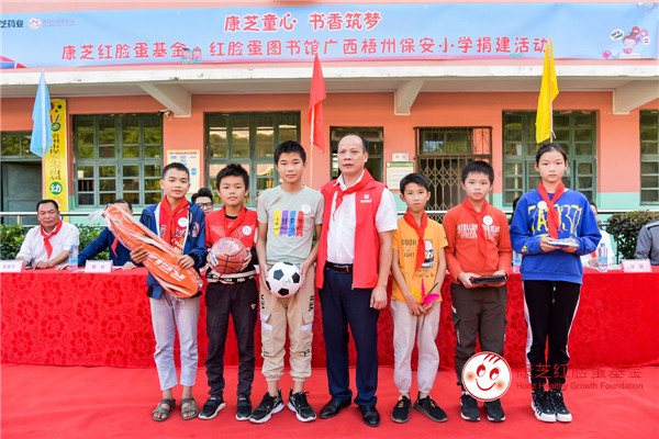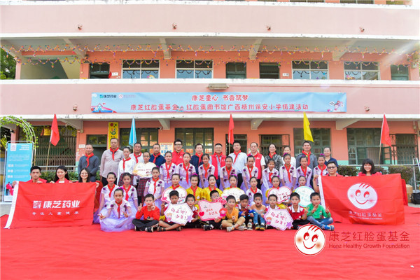 2019年11月11日,康芝紅臉蛋基金攜手康芝藥業(yè)梧州代理商團(tuán)隊及當(dāng)?shù)卦\所前往廣西省梧州市萬秀區(qū)夏郢鎮(zhèn)保安小學(xué)開展愛心探訪及捐贈活動,第21所康芝紅臉蛋圖書館落戶梧州。