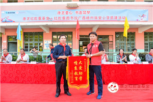 為表謝意,保安小學(xué)代表們給康芝藥業(yè)回贈了自己親手所作的手工作品,保安小學(xué)校長將兩面寫有“捐資助學(xué) 奉獻(xiàn)愛心”、“大愛助學(xué)情系教育”的錦旗分別回贈給康芝藥業(yè)及康芝藥業(yè)梧州代理商團(tuán)隊。