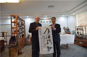 隨后,洪江游董事長(zhǎng)與專(zhuān)家們前往茶藝室品酒暢談,并向Jusko教授、Mager教授贈(zèng)送了書(shū)畫(huà)作品。