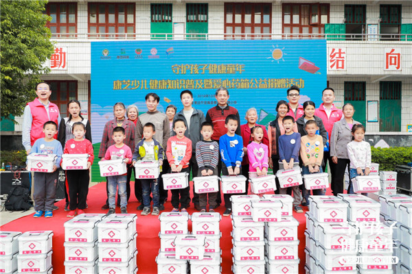 2019年,康芝藥業(yè)積極響應(yīng)國家脫貧攻堅及健康中國的號召,聯(lián)合大翔藥業(yè)等知名藥企,發(fā)揮藥企本身能量,通過康芝紅臉蛋基金為廣大少年兒童和家長普及兒童健康知識,開授“少兒健康常識和急救知識公益課堂”,并為孩子們和家庭配備一個少兒健康愛心藥箱,為孩子的健康成長保駕護航。