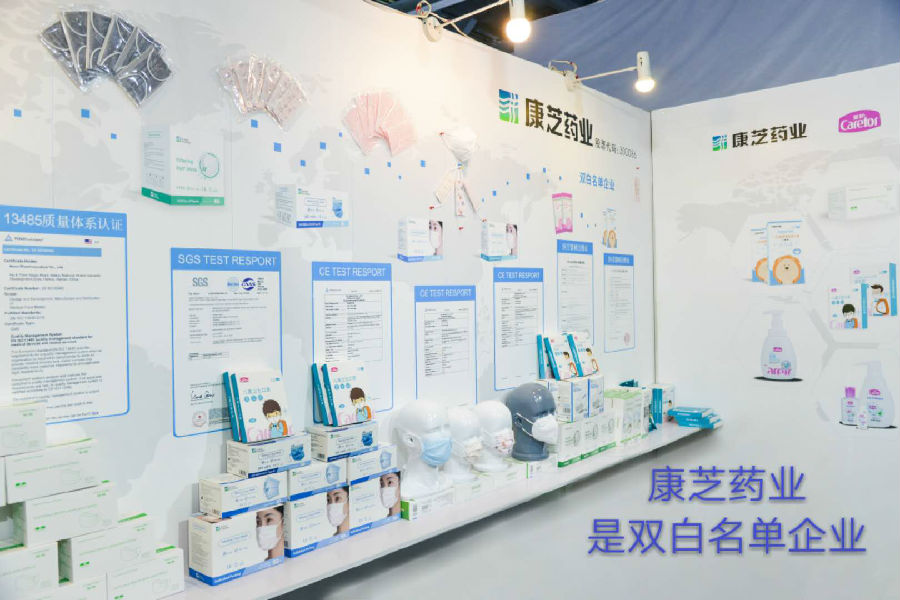 康芝藥業(yè)在此次展會上全方位展示了防疫產(chǎn)品,包括醫(yī)用口罩、兒童口罩、防護(hù)口罩以及消毒產(chǎn)品。