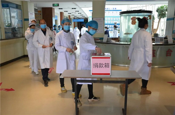 捐款儀式上,醫(yī)院黨員干部陳金國總經(jīng)理率先垂范、帶頭捐款。隨后,不止是黨員,全體職工都踴躍參與,慷慨解囊,紛紛伸出援手,為共同抗擊疫情貢獻了一份愛心和力量。部分因疫情原因未返崗的職工也讓同事為自己代為捐款,即使人不在醫(yī)院,也想貢獻出自己的一份力量。