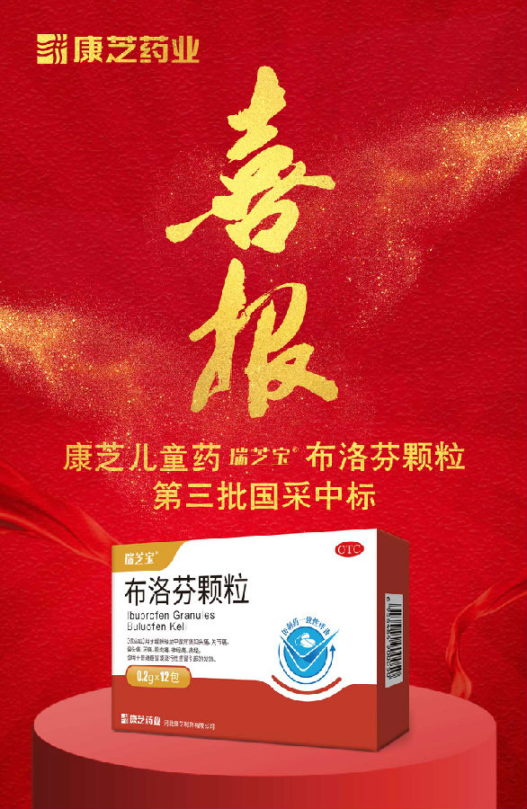 8月20日,第三批全國(guó)藥品集中采購(gòu)中選結(jié)果發(fā)布,康芝藥業(yè)全資子公司河北康芝制藥有限公司生產(chǎn)的兒童藥瑞芝寶?布洛芬顆粒成功中標(biāo)!
