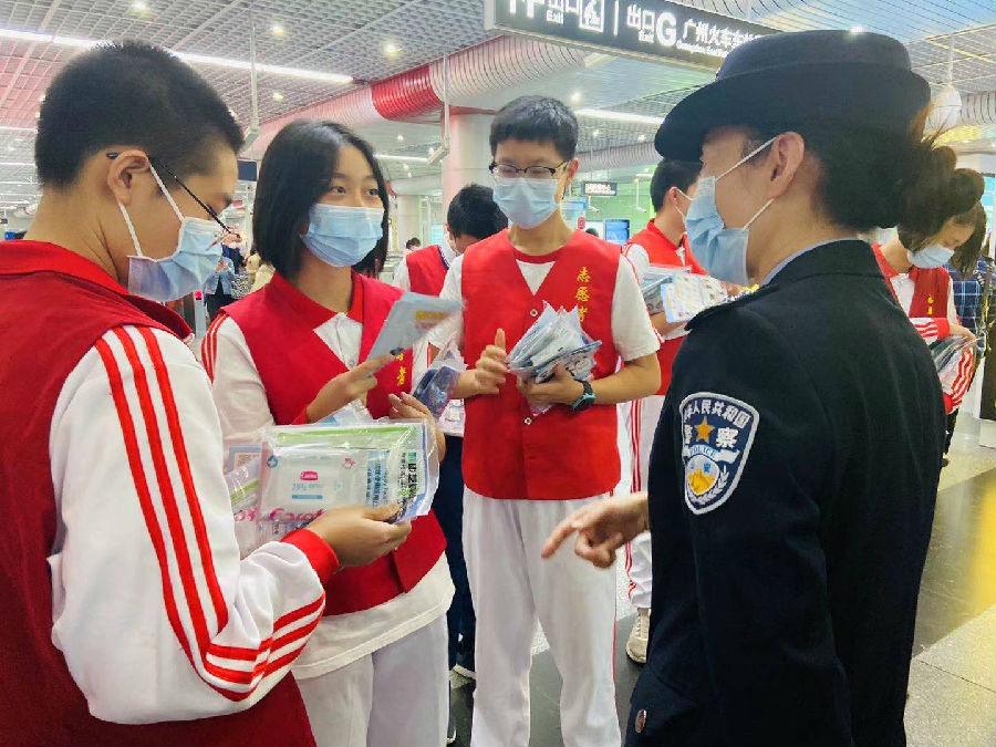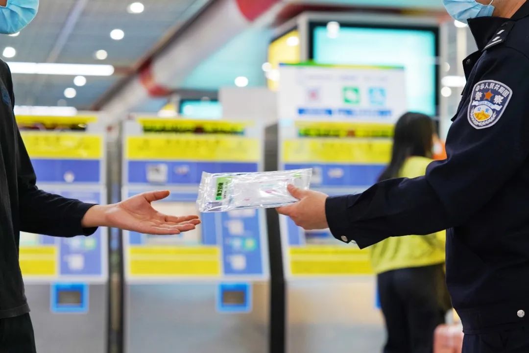 本次志愿服務(wù)活動中,來自各個中學(xué)的20余名學(xué)生志愿者在民警、輔警的帶領(lǐng)下,在進站口、售票機和地鐵站臺等位置,向來往乘客講解“斷橋詐騙”和“小額票卡詐騙”等針對旅客等常見騙局,并派發(fā)由康芝藥業(yè)為返鄉(xiāng)旅客貼心準備的康芝防疫出行暖心包,里面含有成人+兒童醫(yī)用口罩和免洗手消毒凝膠,為春運健康出行保駕護航。