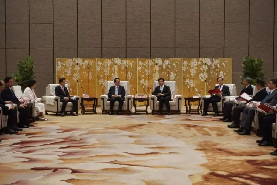 在交流互動環(huán)節(jié),康芝藥業(yè)董事長洪江游向馮飛省長和李卓彬副主席介紹:第21屆國際潮團聯(lián)誼年會將會在海南舉行,屆時全球知名潮商將齊聚海南共襄盛會,將會為海南帶來商機并助推海南自貿(mào)港建設(shè)。