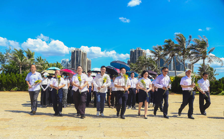 在海南臨高角解放公園,來自康芝藥業(yè)黨支部攜手華夏銀行海口分行黨委的全體黨員干部、預備黨員、入黨積極分子在革命烈士紀念碑下敬獻花束,對烈士表示崇高敬意。
