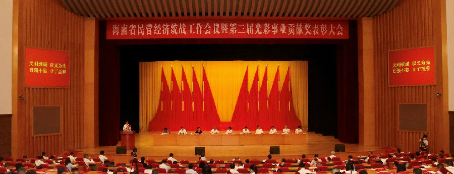 7月30日下午,海南省民營經(jīng)濟(jì)統(tǒng)戰(zhàn)工作會(huì)議暨第三屆光彩事業(yè)貢獻(xiàn)獎(jiǎng)表彰大會(huì)在??诼≈卣匍_,大會(huì)對近年來為海南經(jīng)濟(jì)社會(huì)發(fā)展及光彩事業(yè)做出突出貢獻(xiàn)的民營企業(yè)家進(jìn)行表彰。省委常委、統(tǒng)戰(zhàn)部部長苻彩香出席會(huì)議并講話。省委常委、常務(wù)副省長沈丹陽,省人大常委會(huì)副主任康耀紅,省政協(xié)副主席吳巖峻出席。