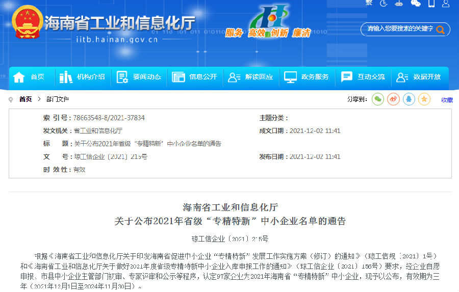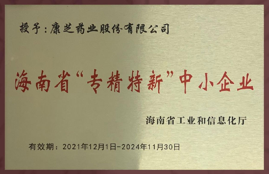 近日,海南省工業(yè)和信息化廳正式公布2021年省級“專精特新”中小企業(yè)名單。其中,康芝藥業(yè)股份有限公司作為海南省首家創(chuàng)業(yè)板兒童大健康上市藥企順利入圍。