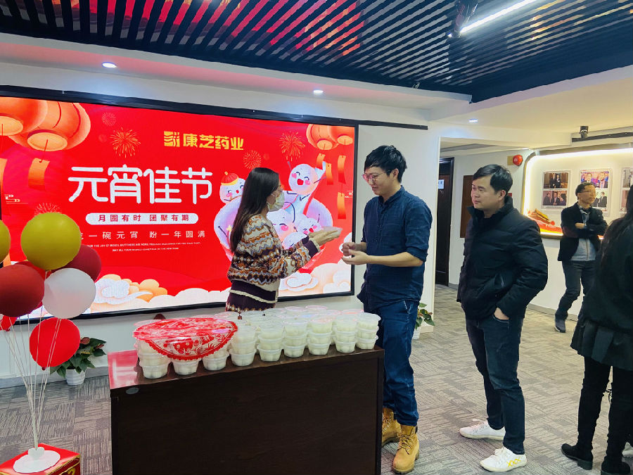 下午,康芝藥業(yè)總裁辦與行政部早早地就把熱騰騰的湯圓準(zhǔn)備好,空氣中彌漫著湯圓的芳香,康芝藥業(yè)總裁辦在前臺親自為各部門端上暖心湯圓,場面十分溫馨。