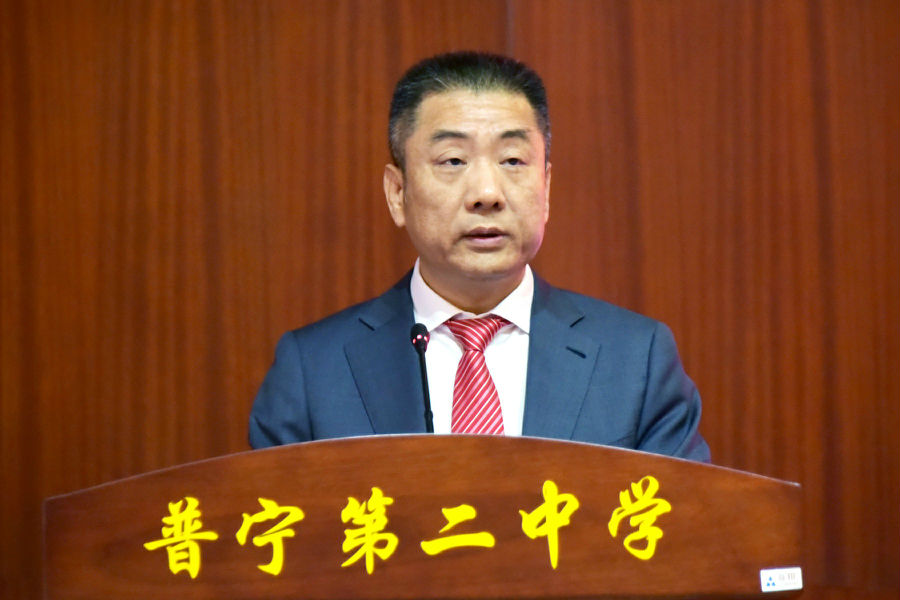 巫樹林在會上講話,他說,近年來,普寧市深入貫徹落實(shí)習(xí)近平總書記關(guān)于教育的重要論述和重要指示精神,把教育放在優(yōu)先發(fā)展的戰(zhàn)略位置,教育事業(yè)取得長足發(fā)展,形成了“黨政重教、社會助教、教師樂教、全民興教”的良好局面,這離不開廣大教育工作者的共同努力,也離不開一直關(guān)心家鄉(xiāng)教育事業(yè)發(fā)展的愛心企業(yè)家洪江游先生等社會各界的支持。他希望市教育部門貫徹落實(shí)好教育高質(zhì)量發(fā)展三年行動計(jì)劃,努力辦好人民滿意的教育。普寧市第二中學(xué)要堅(jiān)決落實(shí)市委黃銳亮?xí)浱岢龅摹皹淞駱雍蜆?biāo)兵,起示范帶動作用”指示精神,把學(xué)校辦成高質(zhì)量、現(xiàn)代化名校,廣大教育工作者要做到安教、樂教、勤教、善教,為普寧教育事業(yè)的高質(zhì)量發(fā)展奉獻(xiàn)自己的力量。希望同學(xué)們以夢為馬,不負(fù)韶華,在求知、求真、求新的道路上努力拼搏、踔厲奮發(fā),常懷感恩之心,他日回報(bào)家鄉(xiāng)。同時(shí),希望廣大鄉(xiāng)賢、校友和社會各界熱心人士一如既往地關(guān)心、支持普寧的教育事業(yè),踴躍參與捐資助教活動,為造福桑梓、為普寧教育高質(zhì)量發(fā)展做出新的更大的貢獻(xiàn)!