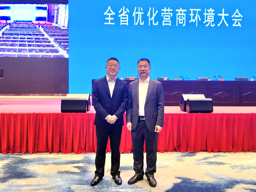 康芝集團兼康芝藥業(yè)董事長洪江游與海南省營商環(huán)境建設(shè)廳廳長陳際陽合影